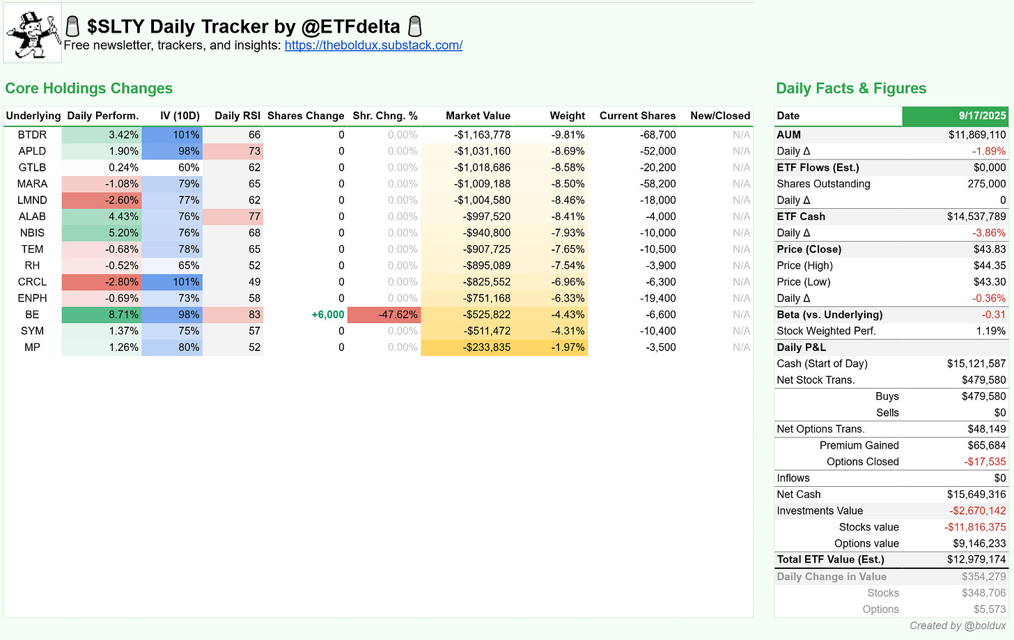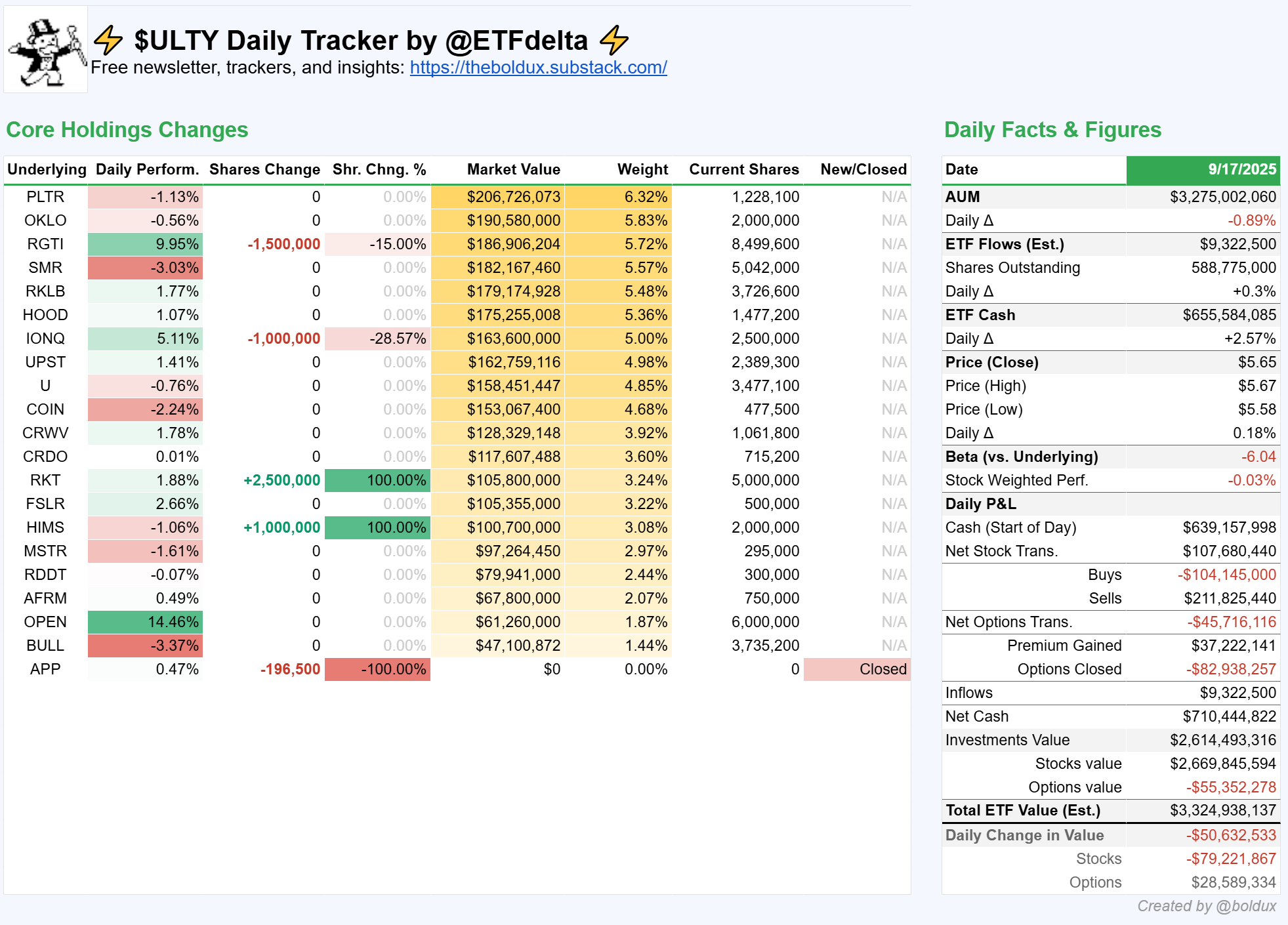 ULTY/SLTY Daily Tracker: 9/17/2025