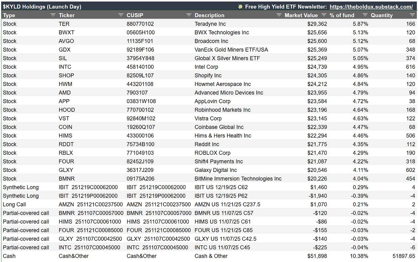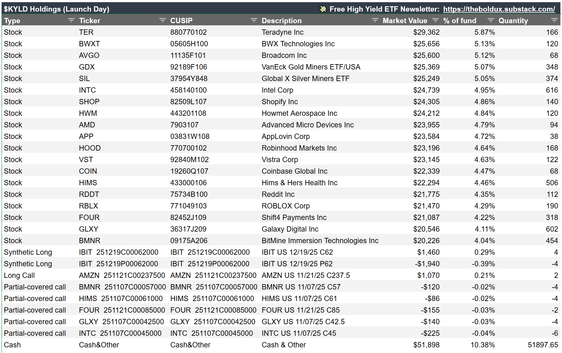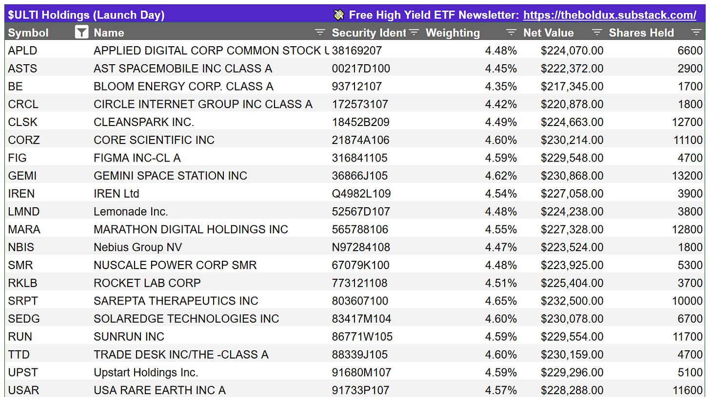 👇 Scroll down for ULTI & KYLD holdings. 👇